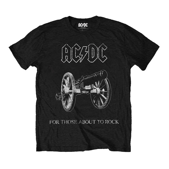 This official licensed short sleeved t-shirt in black features AC/DC's classic For Those About To Rock design on the front. Comes fitted with branded official hang tags.