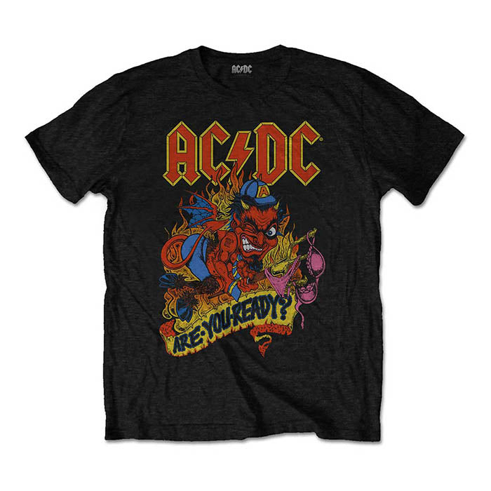 This official licensed short sleeved t-shirt in black features artwork for AC/DC's 'Are You Ready?' on the front. Comes fitted with branded official hang tags.