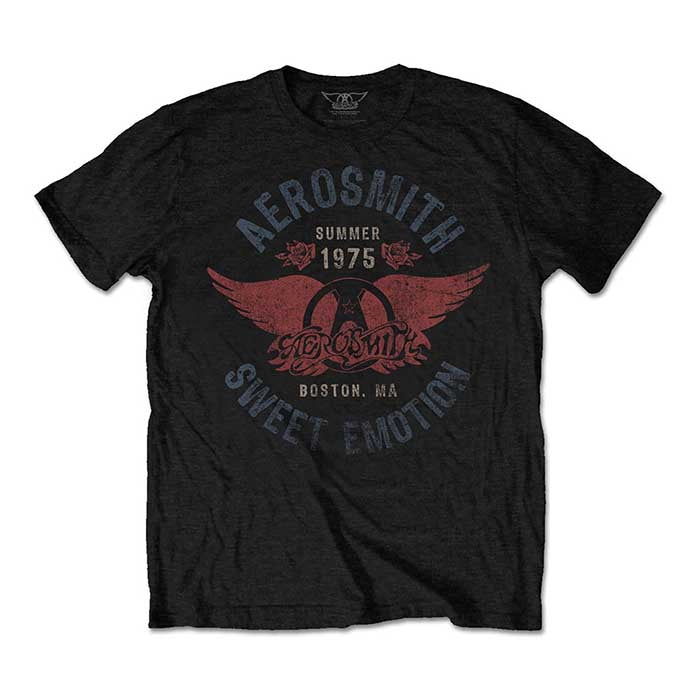 This official and licensed short sleeved black t-shirt features Aerosmith 'Sweet Emotion' design printed on the front.