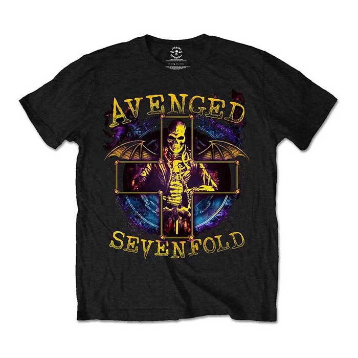 This official licensed short sleeved t-shirt in black features A7X's 'Stellar' artwork on the front.