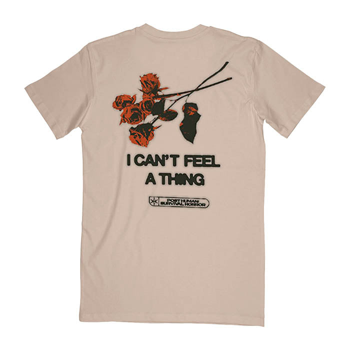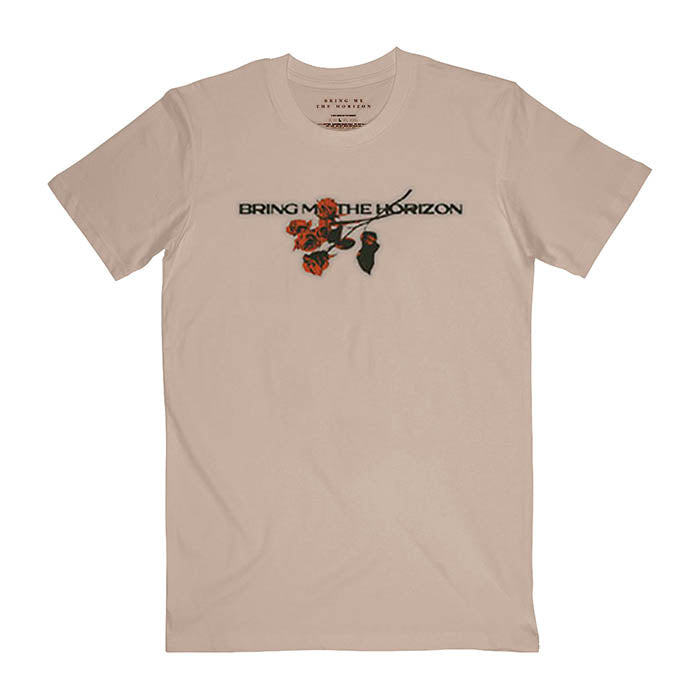 This official licensed short sleeved sand t-shirt features BMTH's 'Flowers' artwork printed on the front and back.