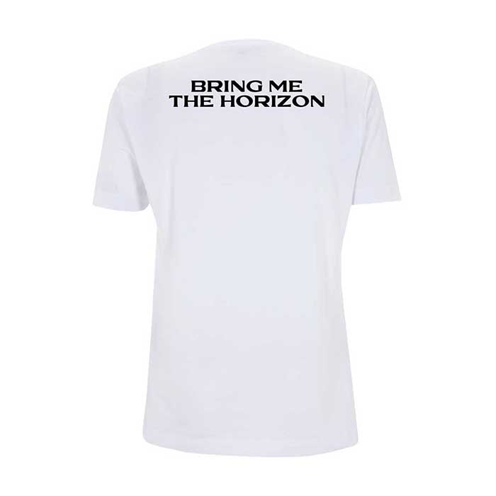 This official licensed short sleeved t-shirt in white features Bring Me The Horizon 'Barbed Wire' logo artwork printed on the front and back.