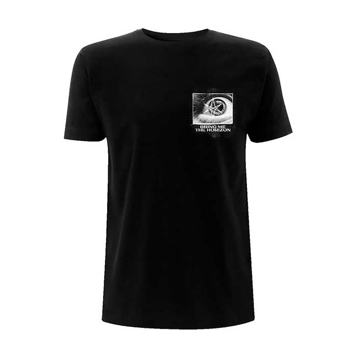 This official licensed short sleeved t-shirt in black features Bring Me The Horizon 'Remain Calm' artwork printed on the front and back.