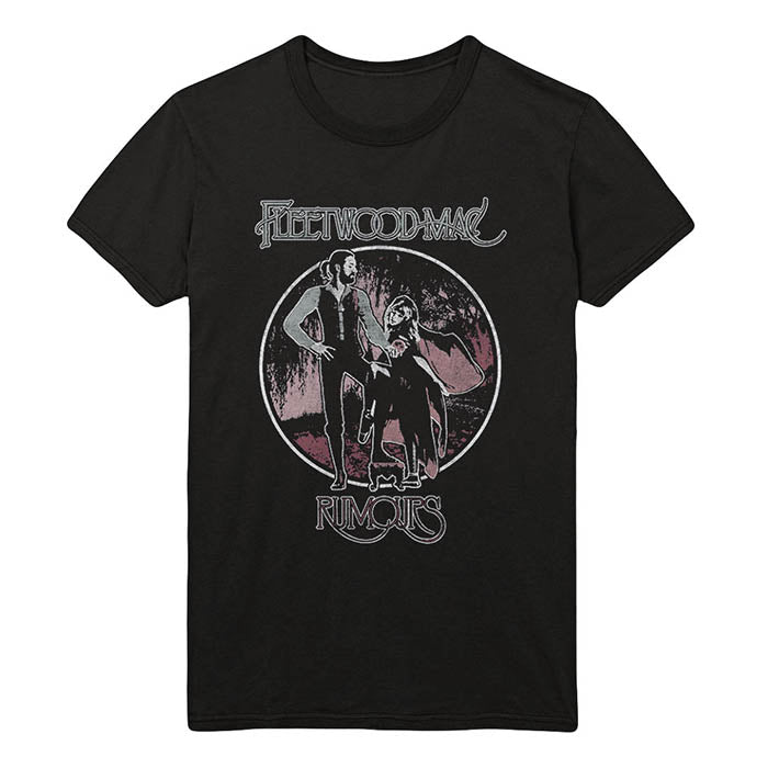 This official licensed short sleeved t-shirt in black features a vintage print of Fleetwood Mac's Rumours album artwork in a circle printed on the front.