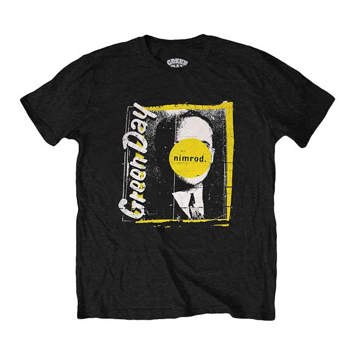 This official licensed short sleeved black t-shirt features Green Day's Nimrod album cover art printed on the front with album tracks on the back.