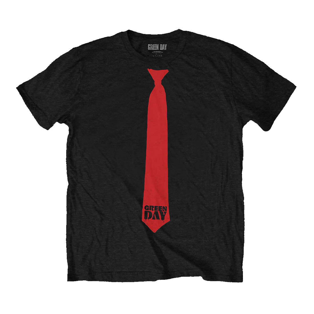 This official licensed short sleeved black t-shirt features a red tie with the Green Day logo printed on the front. Comes fitted with branded official tags.