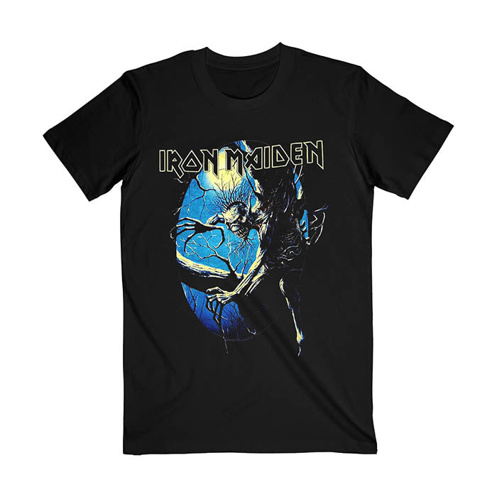 This official and licensed short sleeved black t-shirt features Iron Maiden's Fear Of The Dark 'Oval' artwork printed on the front and back.