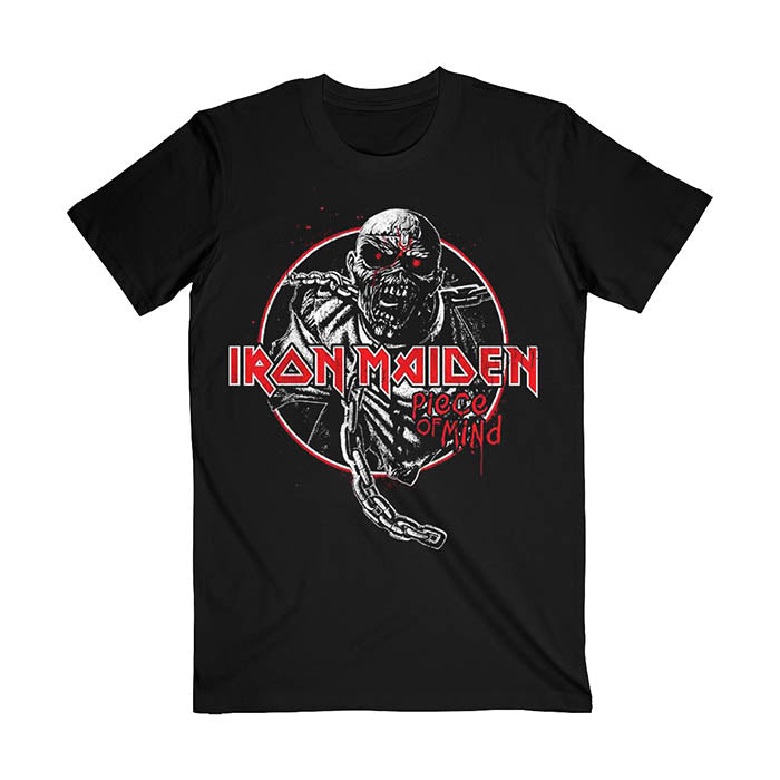 This official and licensed short sleeved black t-shirt features Iron Maiden's 'Piece Of Mind Vintage Circle' artwork on the front.