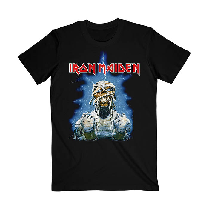 This official and licensed short sleeved black t-shirt features vintage tour artwork of Iron Maiden's World Slavery Tour 1984-85 printed on the front and back.