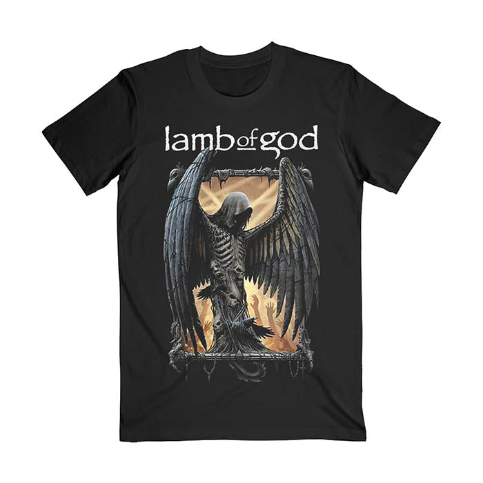 This official licensed short sleeved black t-shirt features Lamb Of God 'Winged Death' artwork on the front.