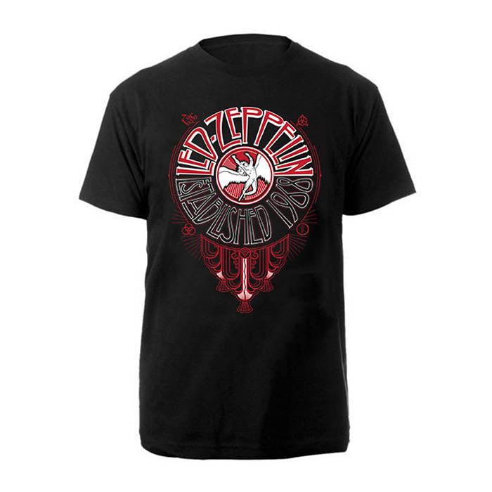 This official and licensed short sleeved t-shirt in black features Led Zeppelin 'Deco Circle' design printed on the front.