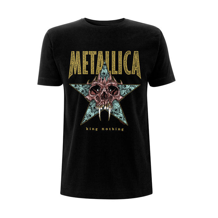 This official licensed short sleeved t-shirt in black features Metallica's King Nothing artwork by Pushead on the front and back.