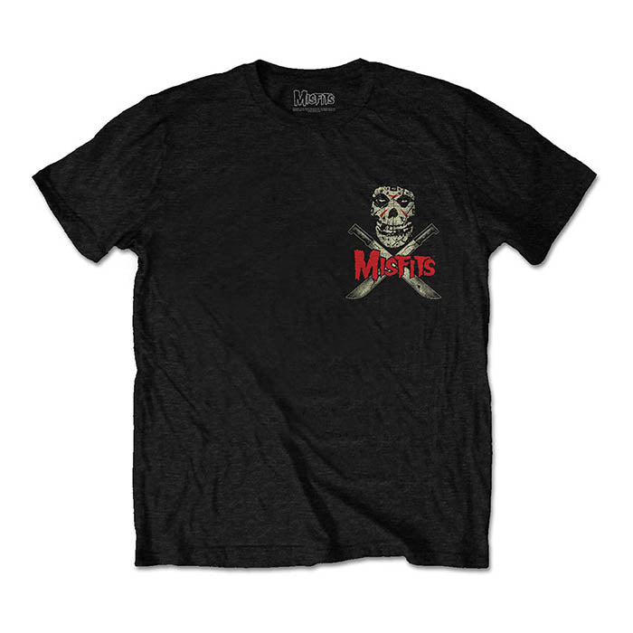 This official licensed short sleeved t-shirt in black features Misfits' 'Machete' design printed on the front chest pocket and back.