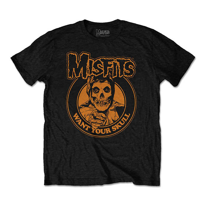 This official licensed short sleeved t-shirt in black features Misfits' 'Want Your Skull' design printed on the front.