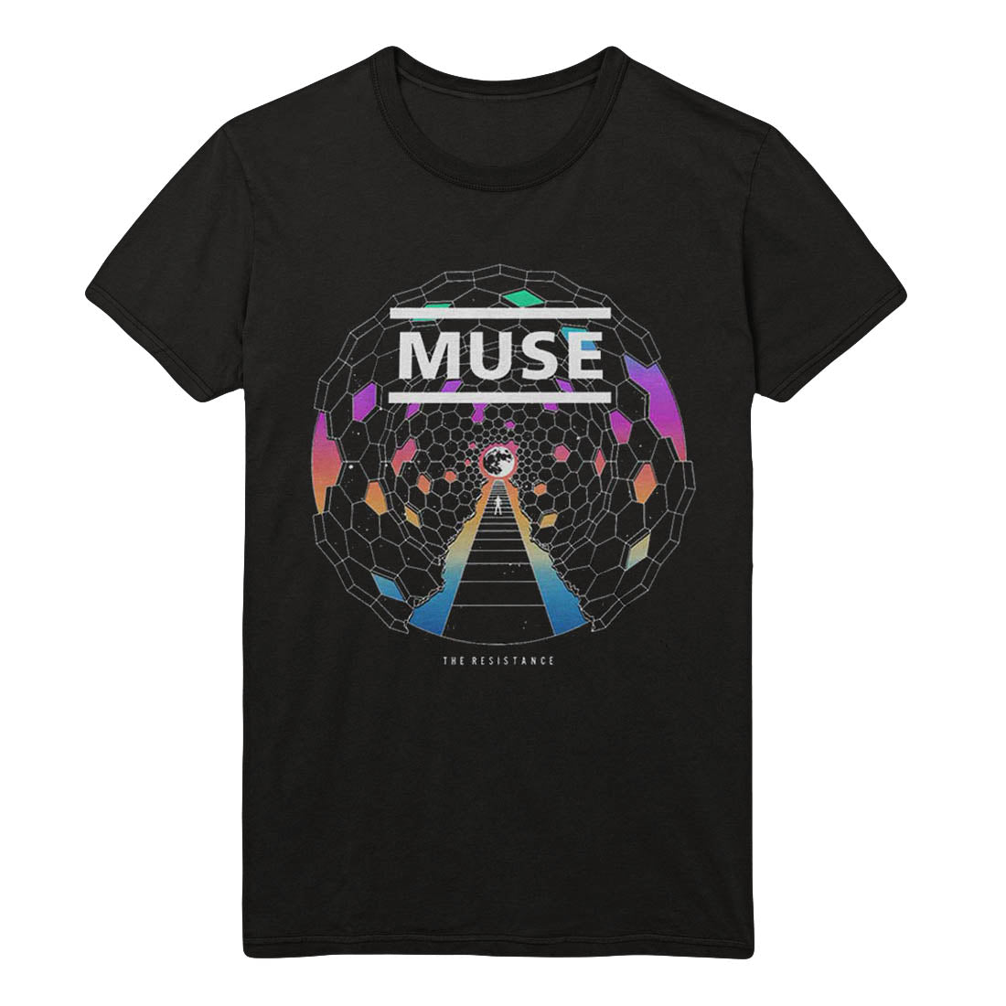 This official licensed short sleeved t-shirt in black features Muse 'Resistance Moon' design printed on the front.