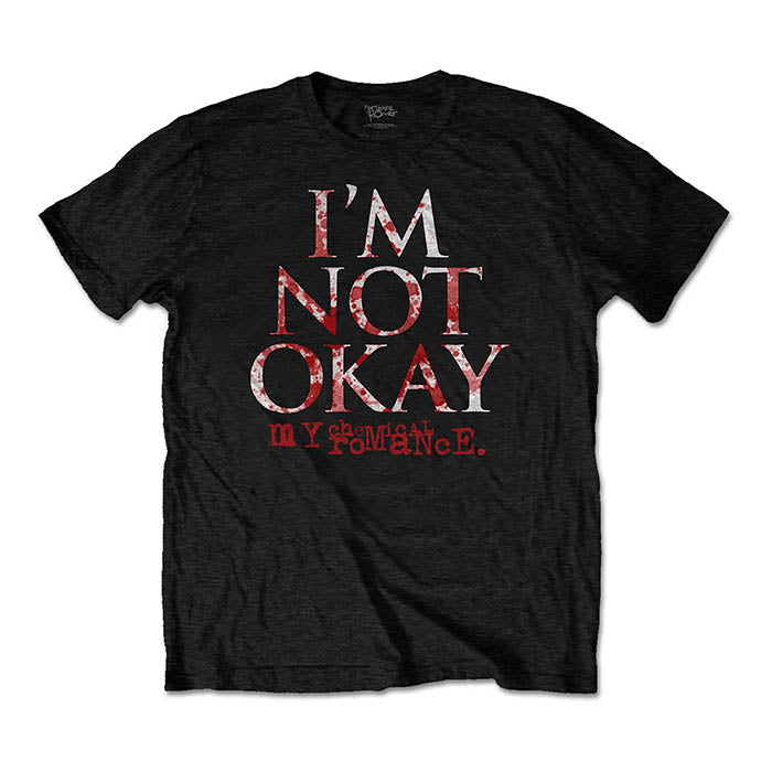 This official and licensed short sleeved t-shirt in black features 'I'm Not Okay' above My Chemical Romance logo on the front. Comes fitted with branded official hang tags.