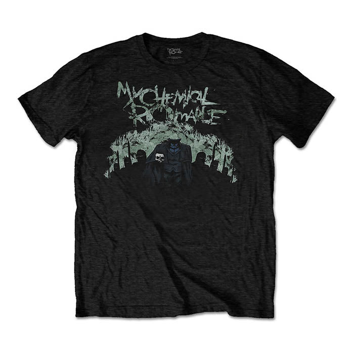 This official and licensed short sleeved t-shirt in black features My Chemical Romance 'Knight Procession' design printed on the front.