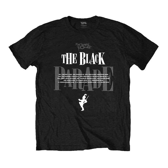 This official and licensed short sleeved t-shirt in black features My Chemical Romance's The Black Parade 'Tracks' artwork printed on the front.