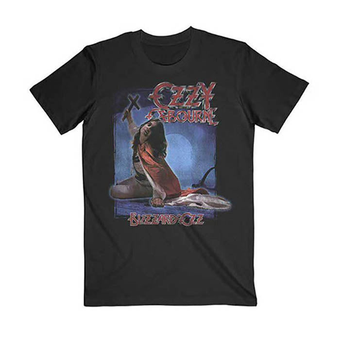 This official licensed short sleeved black t-shirt features Ozzy Osbourne's Blizzard Of Ozz album cover artwork on the front with album tracks listed on the back.