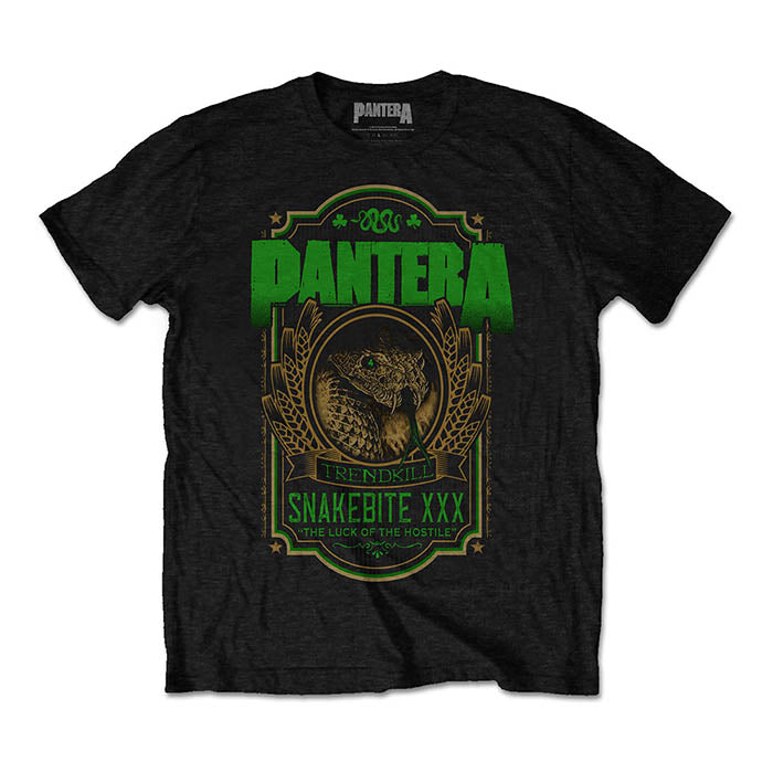 This official licensed short sleeved t-shirt in black features Pantera 'Snakebite XXX' label design printed on the front. Comes fitted with branded official hang tags.