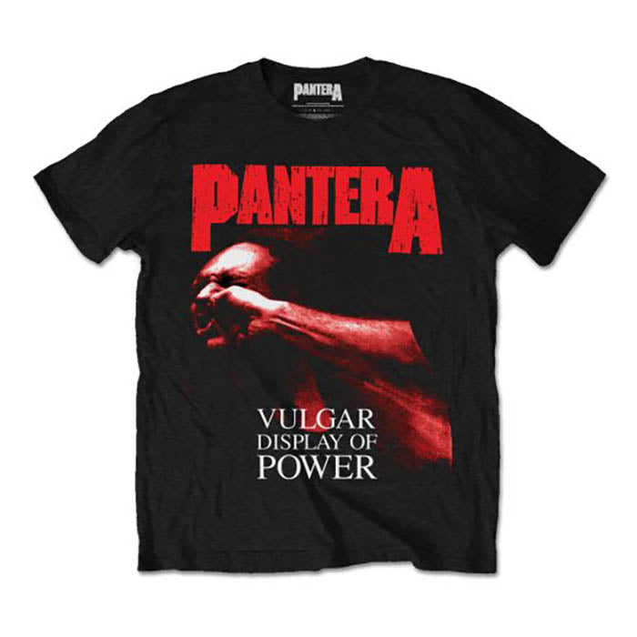 This official licensed short sleeved t-shirt in black features Pantera's Vulgar Display Of Power album art on the front. Comes fitted with branded official hang tags.