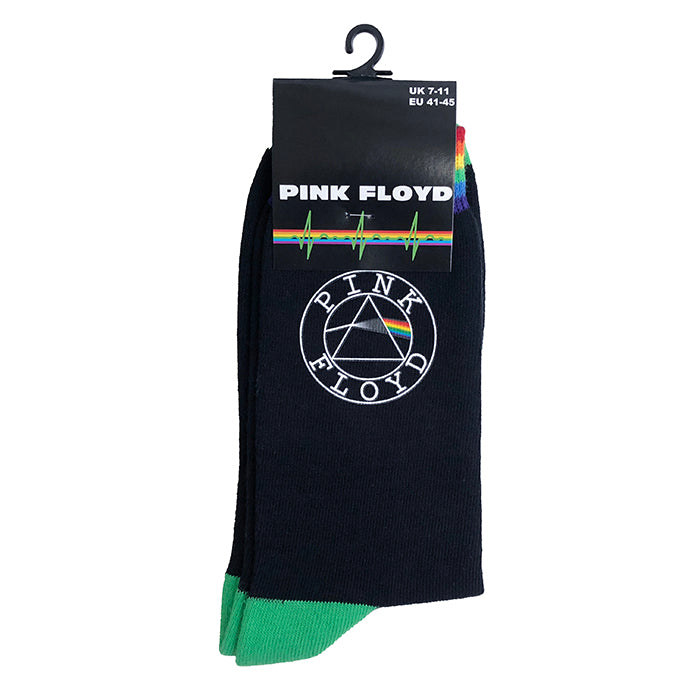 Official and fully licensed cotton mix unisex socks featuring Pink Floyd circle logo. Made from 85% Cotton, 13% Nylon and 2% Elastane.