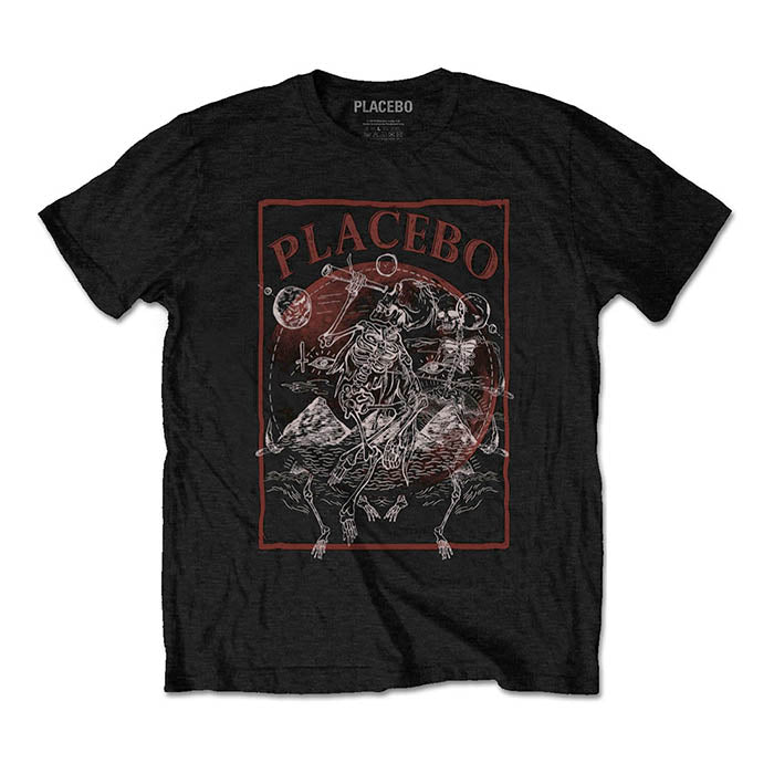 This official licensed short sleeved t-shirt in black features Placebo's 'Astro Skeletons' artwork printed on the front.