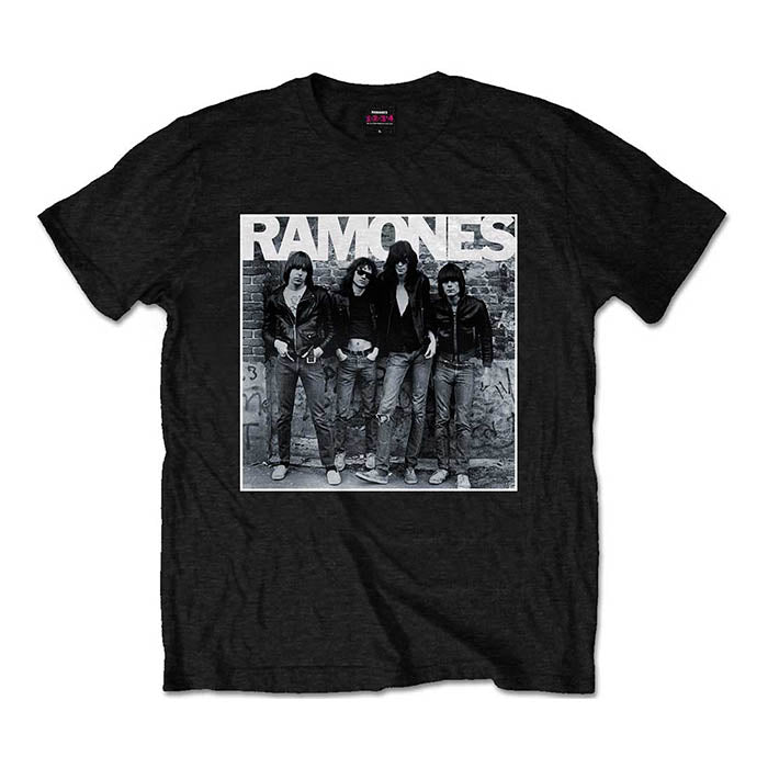 This official licensed short sleeved t-shirt in black features a print of Ramones' debut album cover on the front.