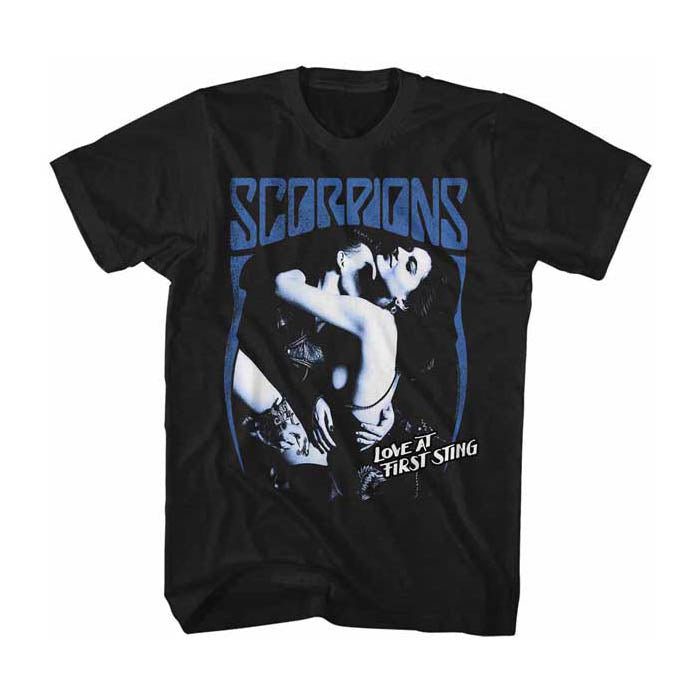 This official licensed short sleeved black t-shirt features Scorpions' Love at First Sting album cover artwork printed on the front.
