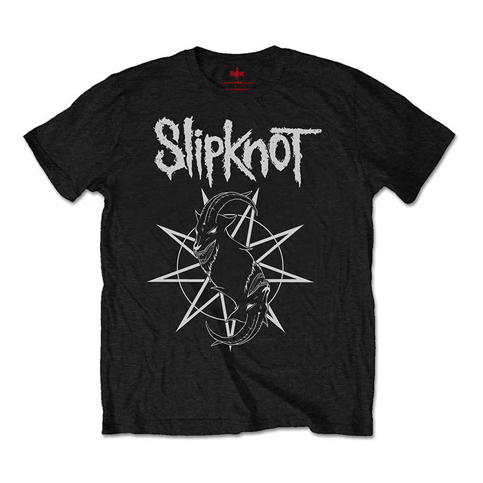 This official licensed short sleeved t-shirt in black features Slipknot's 'Goat Star Logo' artwork on the front and back. Comes fitted with branded official tags.
