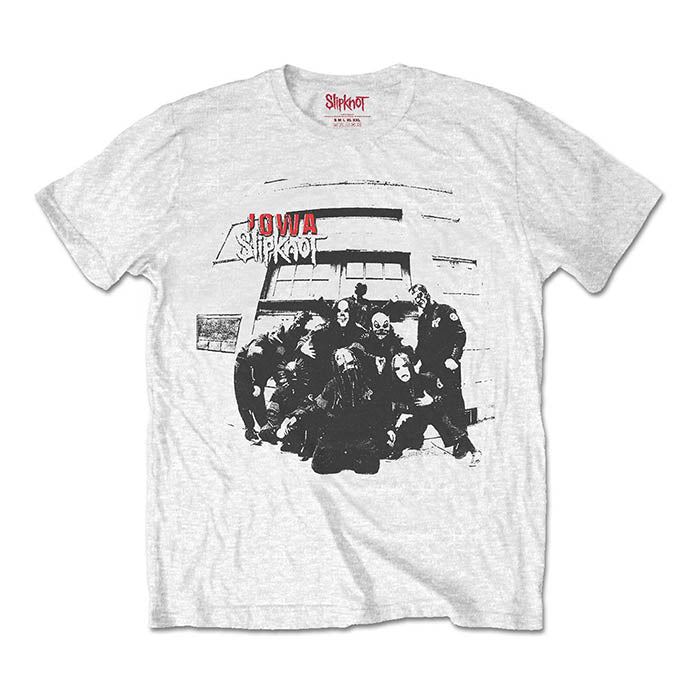 This official licensed short sleeved white t-shirt features Slipknot Iowa band photo on the front with Slipknot logo above Iowa tracks listed on the back.
