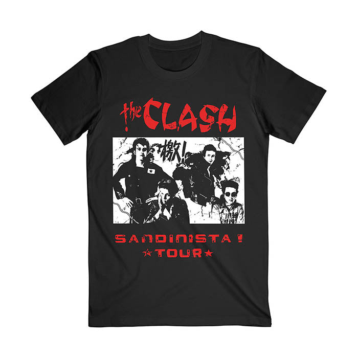 This official licensed short sleeved t-shirt in black features The Clash's 'Sandinista Tour' artwork printed on the front.