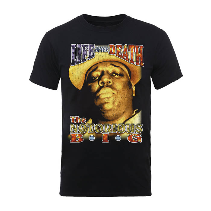 This official licensed short sleeved t-shirt in black features The Notorious B.I.G. Life After Death artwork printed on the front with Sky's The Limit lyrics on the back.