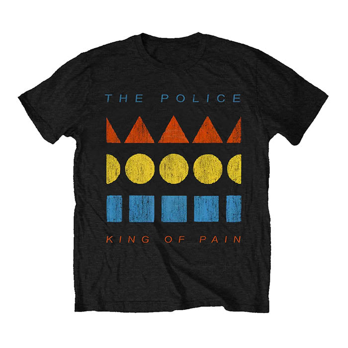This official licensed short sleeved t-shirt in black features The Police's Kings Of Pain artwork printed on the front.