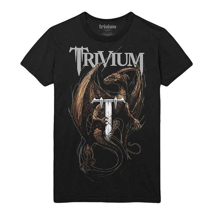 This official licensed short sleeved t-shirt in black features Trivium's Perched Dragon design printed on the front and back.