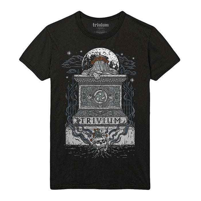 This official licensed short sleeved t-shirt in black features Trivium 'Tomb Rise' artwork on the front.