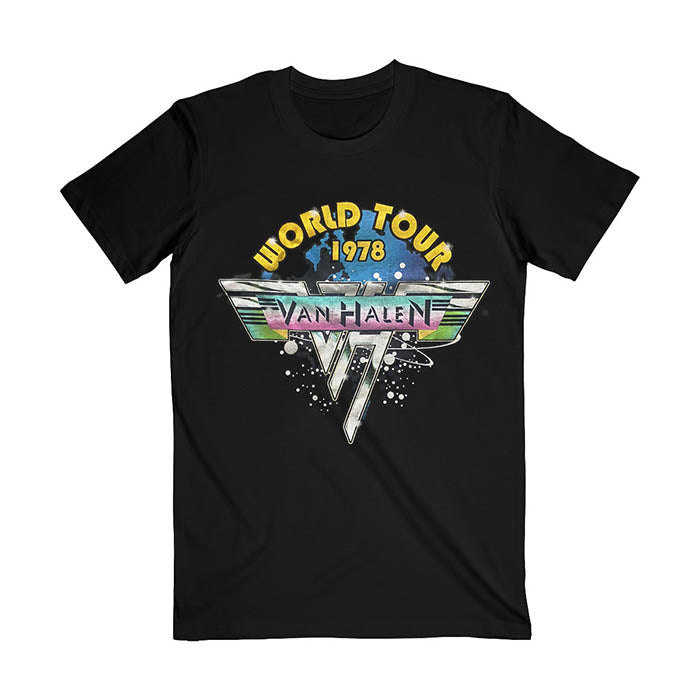 This official licensed short sleeved black t-shirt features Van Halen 'World Tour 1978' design printed on the front.